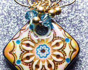 Broken & Renewed Glass Art is the embodiment of my journey into mixed media jewelry which began over 25 years ago when I started working with stained glass in Tucson, AZ. After moving to St. Charles, MO, I was introduced to glass fusing. I love the dynamic way that color can change when heated in a kiln. The variety of color possibilities is amazing...talk about rainbows. Learning to wire wrap became my way to turn the cabochons (focal pieces) into pendants, bracelets, earrings, and other accessories. I enjoy working with hand-painted porcelain cabochons…which are both colorful and lightweight…along with the fused glass, precious metal clay, various metals (often etched), beads, wire, cord and leather.